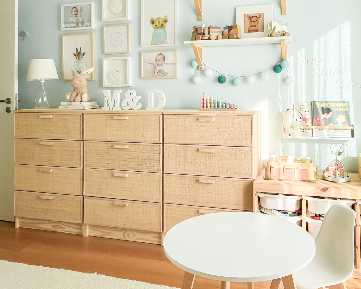 Si vous préférez un espace plus dégagé, nos commodes en raphia AURA sont une excellente option. En plus des vêtements, elles permettent de ranger de nombreux jouets hors de vue et de conserver une sensation d’ordre, même dans le salon ou dans d’autres espaces partagés.