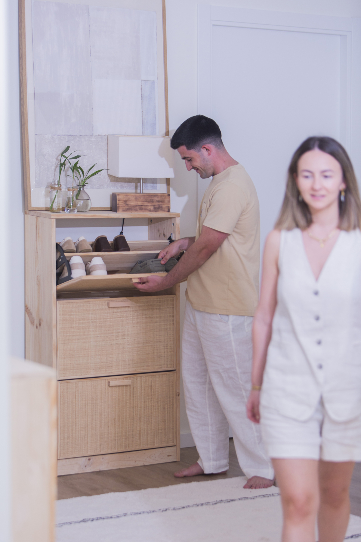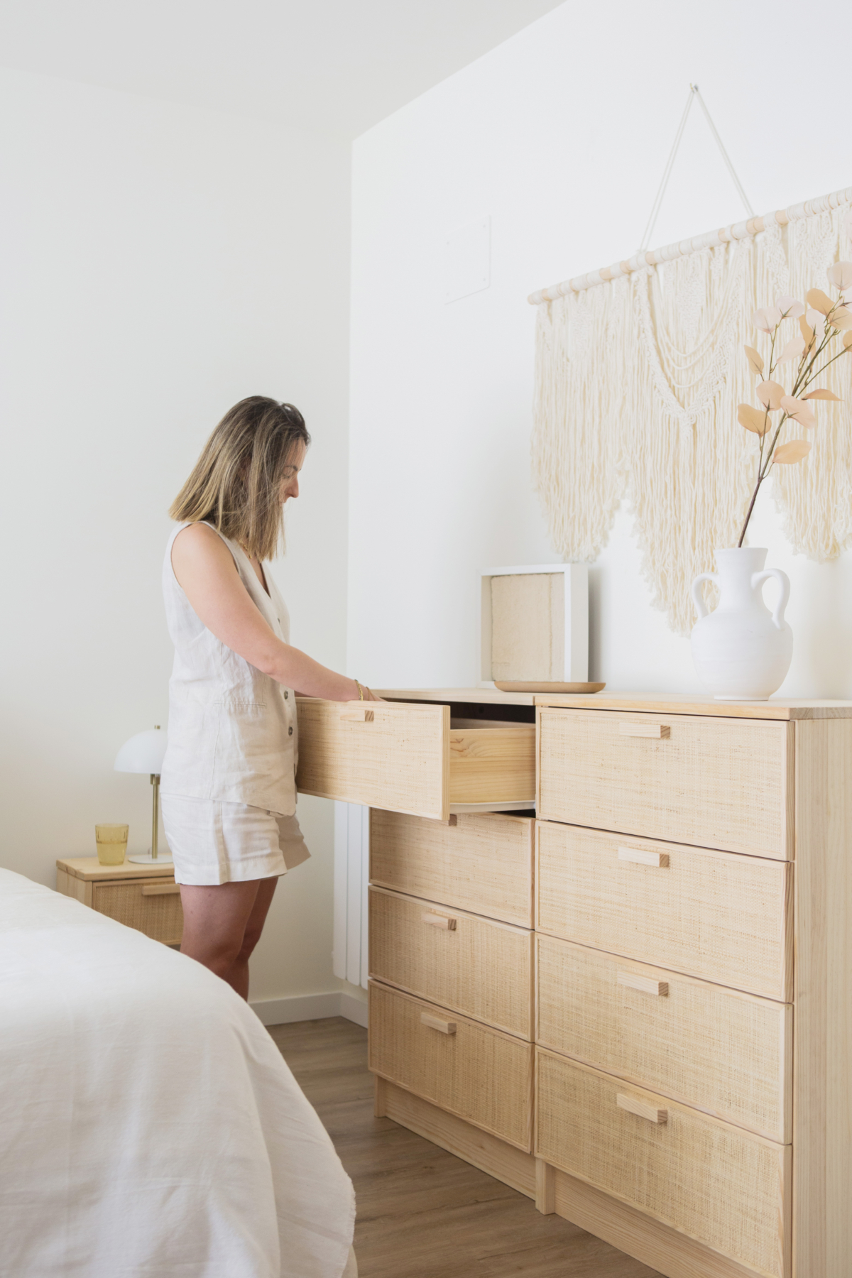 Rêver. Voler. Créer. De cette énergie naît Aura, la nouvelle collection de meubles en raphia et bois naturel pour la chambre et la maison, qui invite à vivre chaque espace avec calme. Cinq pièces artisanales (armoire, buffet, commode, table de chevet et meuble à chaussures) qui reflètent la valeur de la simplicité, la beauté de la nature et le désir de créer un foyer qui parle de vous, sans dire un mot.