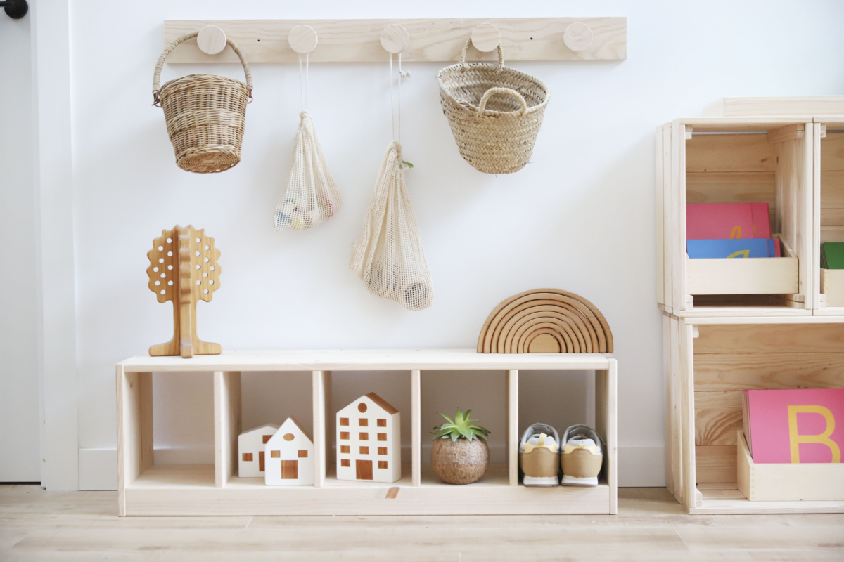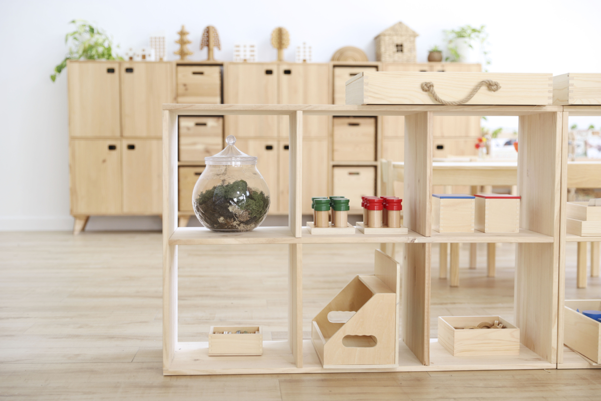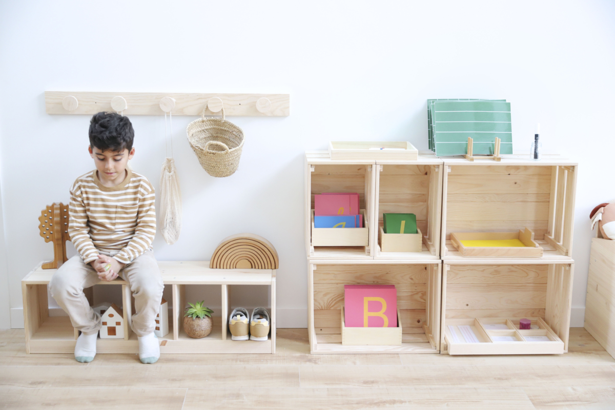 Meubles en bois pour enfants Montessori : Étagères et rangements accessibles