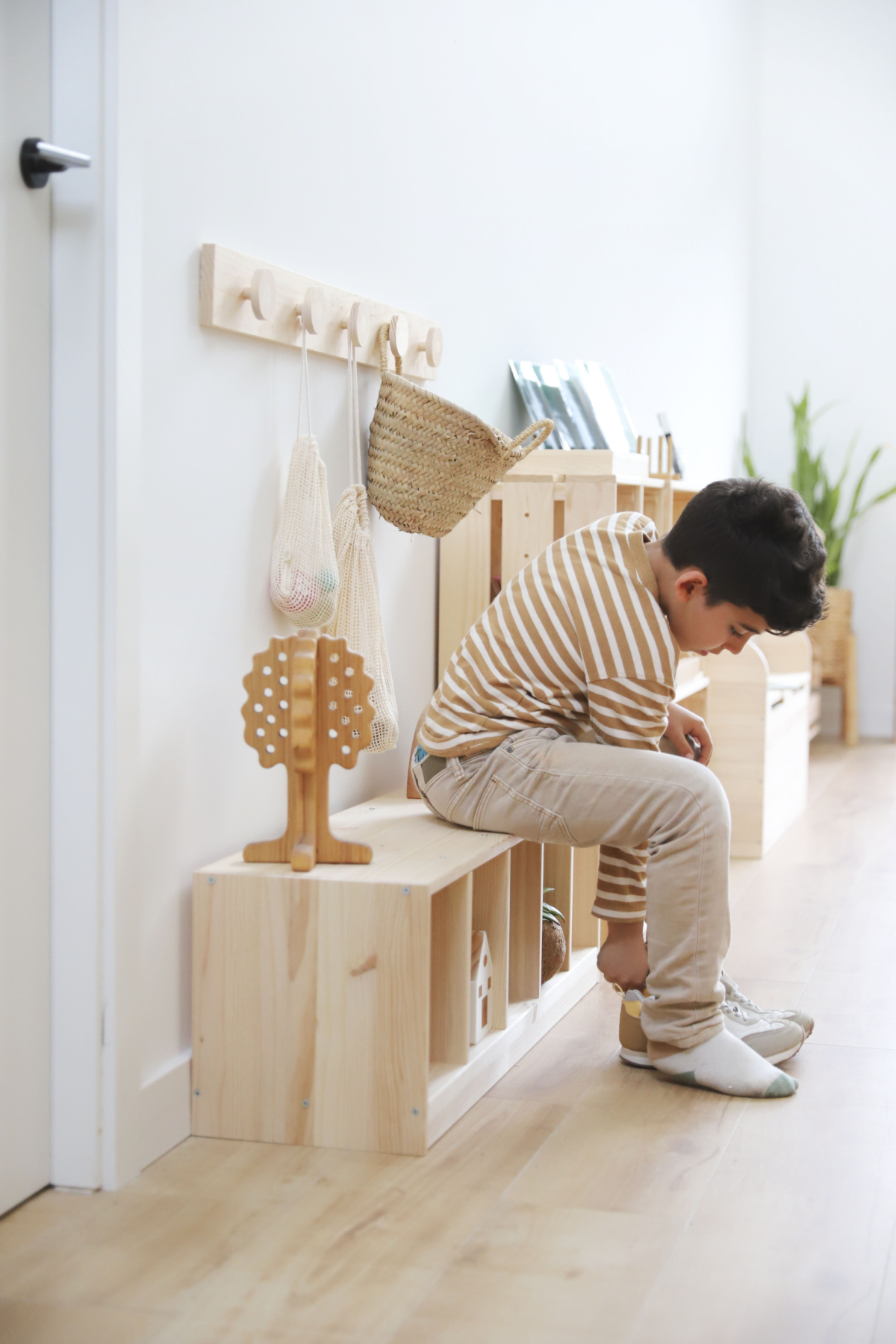 Porte-manteaux et bancs à chaussures, d’autres meubles en bois pour enfants Montessori