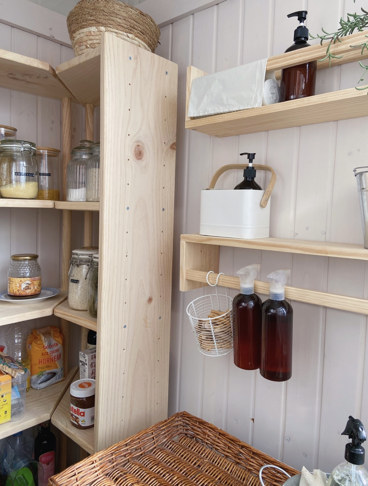 Les étagères supplémentaires sont un autre accessoire essentiel pour optimiser l’espace. Ces étagères vous permettent de mieux utiliser l’espace entre les rayonnages, créant ainsi plusieurs niveaux pour le rangement de différents produits. Des conserves aux bocaux en passant par les boîtes et les ustensiles, plus d’étagères signifient plus d’organisation sans avoir à empiler les objets de manière désordonnée.