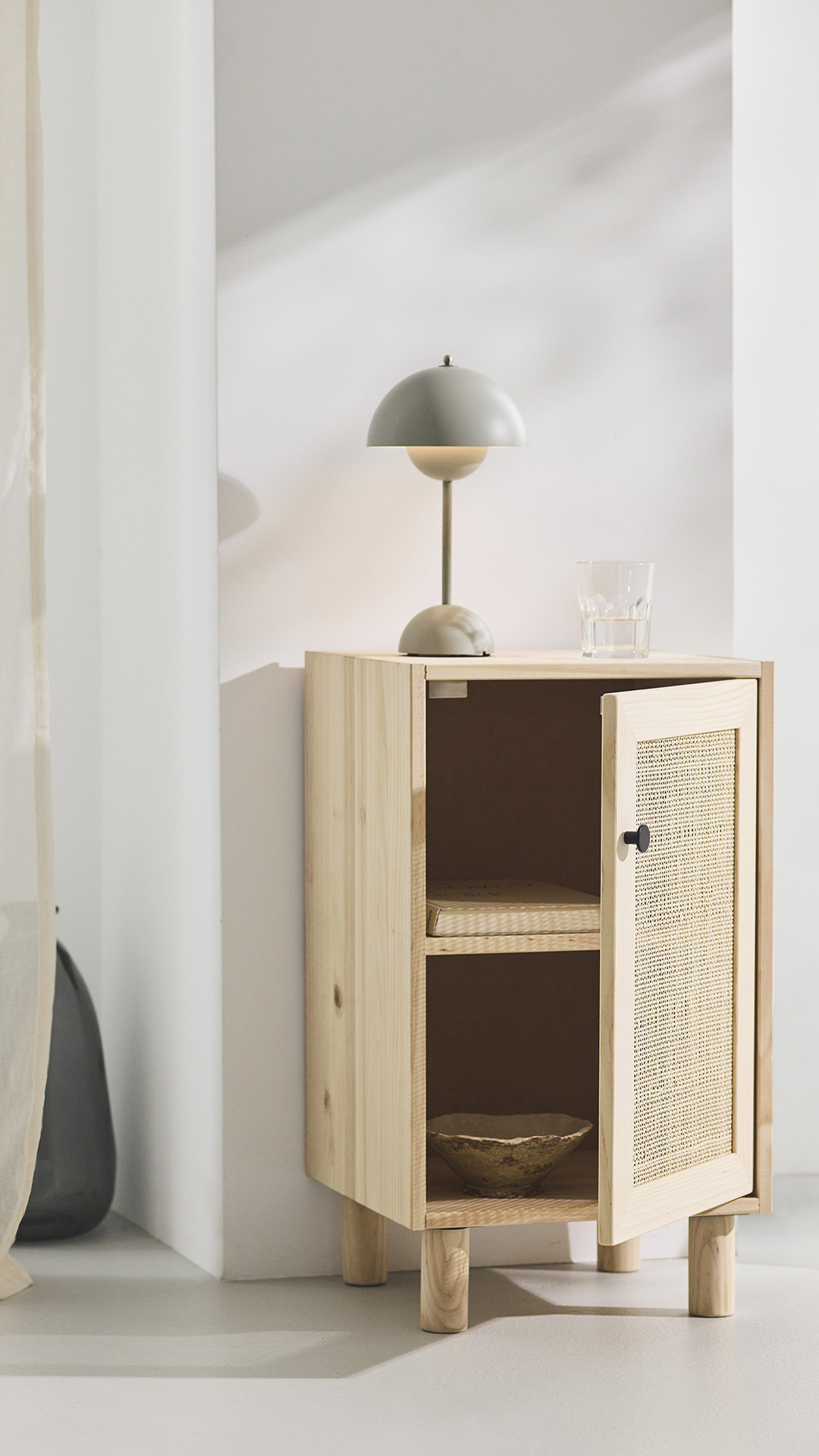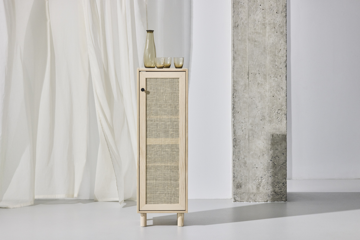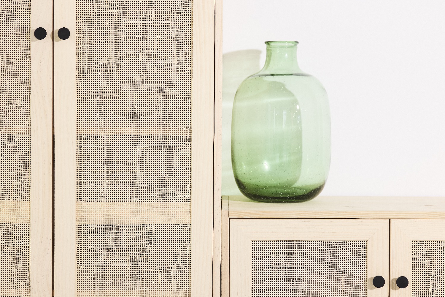 Les portes en rotin de ces quatre meubles sont dotées de poignées en métal noir avec une finition mate. Leurs pieds ronds sont également en pin pour plus de stabilité et de chaleur. Vous pouvez placer chaque pièce seule ou les combiner pour créer un ensemble plus grand, plus fonctionnel et plus harmonieux dans n’importe quelle partie de la maison. En outre, grâce à son design intemporel, cette collection s’adapte aussi bien aux styles de décoration traditionnels que contemporains.