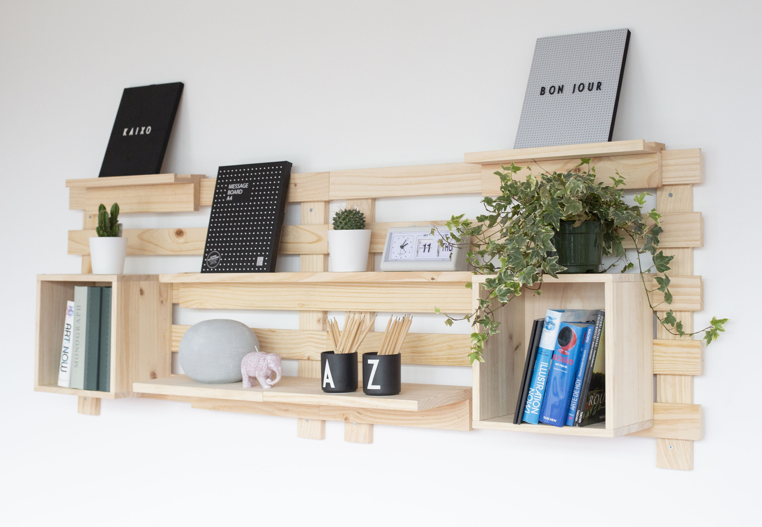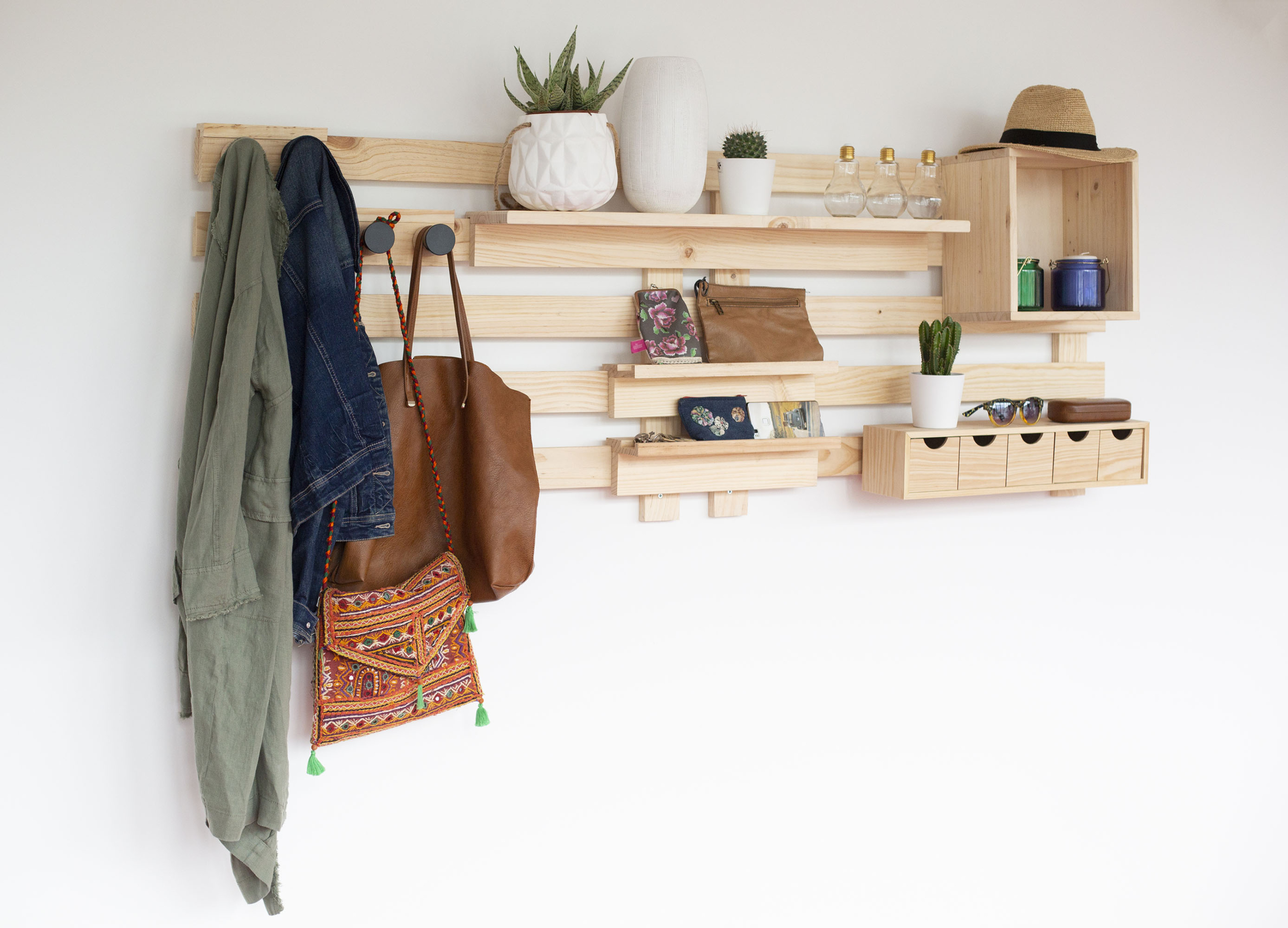 Et plus de bois. C’est l’un des moyens les plus attrayants que vous pouvez utiliser pour décorer les murs. Il s’appelle Tetris et c’est un organisateur mural composé d’une base ou de celles que vous voulez –chacune mesure 65x90x5 cm (hauteur/largeur/profondeur). Sur cette (ces) base(s), vous pouvez ajouter les accessoires qui accompagnent le Tetris, ce qui signifie que vous pouvez faire autant de compositions que vous avez d’imagination. N’importe quel mur quel que soit l’espace de votre maison aura besoin d’un Tetris. Que pensez-vous de ces idées ?