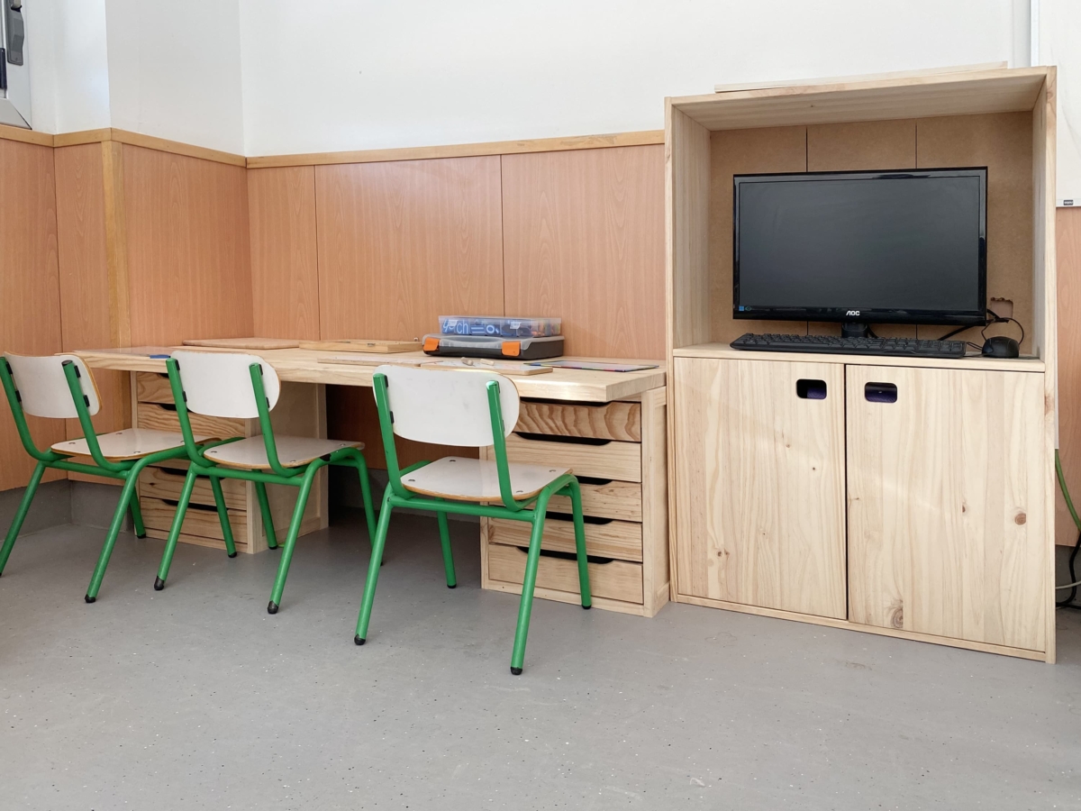 -Quel mobilier avez-vous utilisé en particulier et quels espaces avez-vous créés dans les salles de classe ?