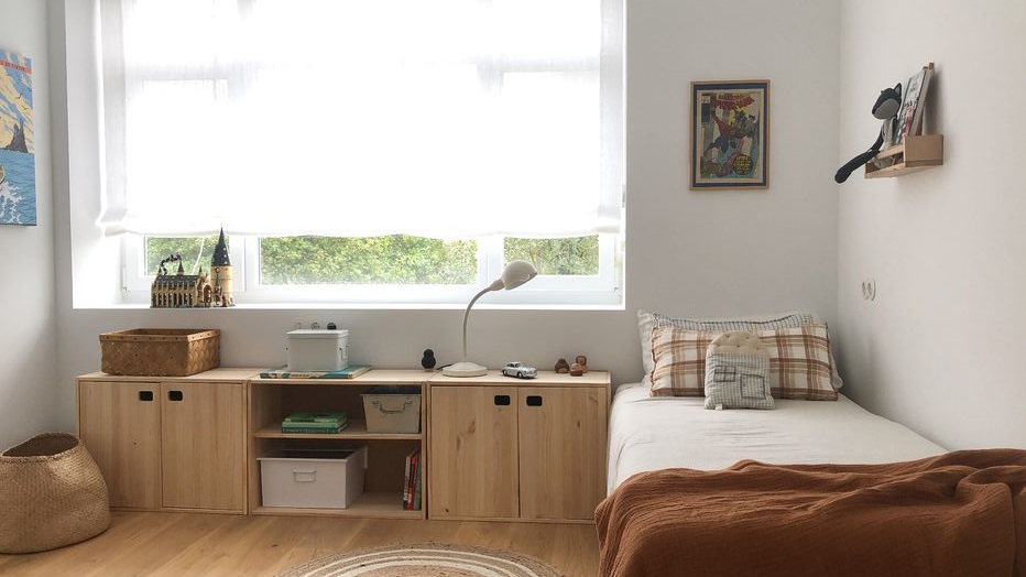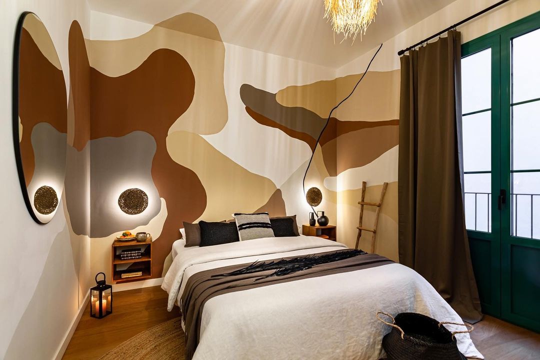 Cette chambre à coucher mettant en vedette notre cube Dinamic avec étagère est un projet de l’architecte d’intérieur Sébastien Robert pour Stay Ukio. Nous pensons que l’ensemble est spectaculaire, mais pour la fresque murale aux tons écrus et bruns, créée par la graphiste Mikhaela Martin, sans commentaire.