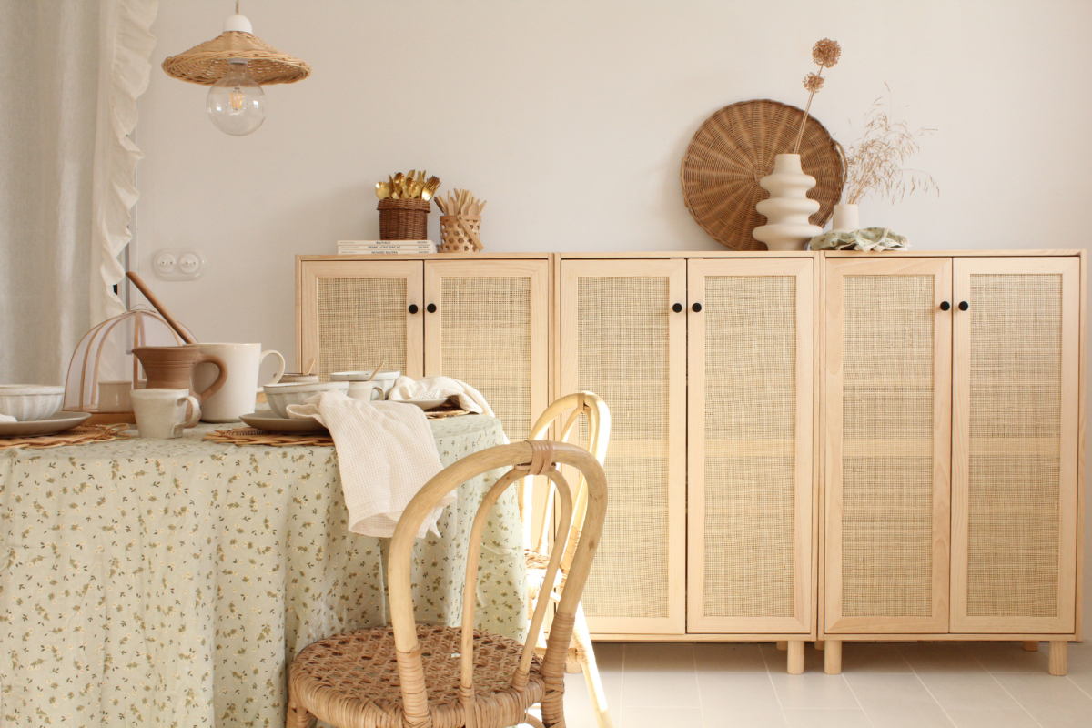 Notre armoire en rotin SENSE peut être transformée en buffet, idéal pour ranger la vaisselle, les nappes et autres éléments essentiels pour la table. La ventilation naturelle du rotin empêche la formation d’humidité, ce qui permet de conserver vos ustensiles et accessoires en parfait état.