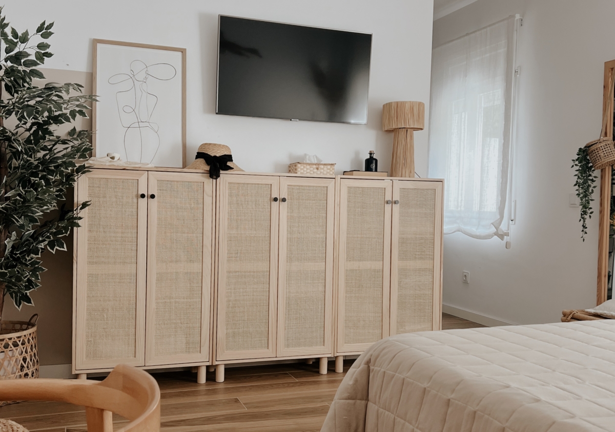 L’un des principaux attraits de cette armoire est sa capacité à s’adapter à différents espaces et utilisations. Son design en rotin tressé à la main et sa structure en bois naturel lui confèrent non seulement une beauté unique, mais aussi une grande solidité et une grande durabilité. Où et comment l’intégrer dans votre maison ? Voici quelques idées :