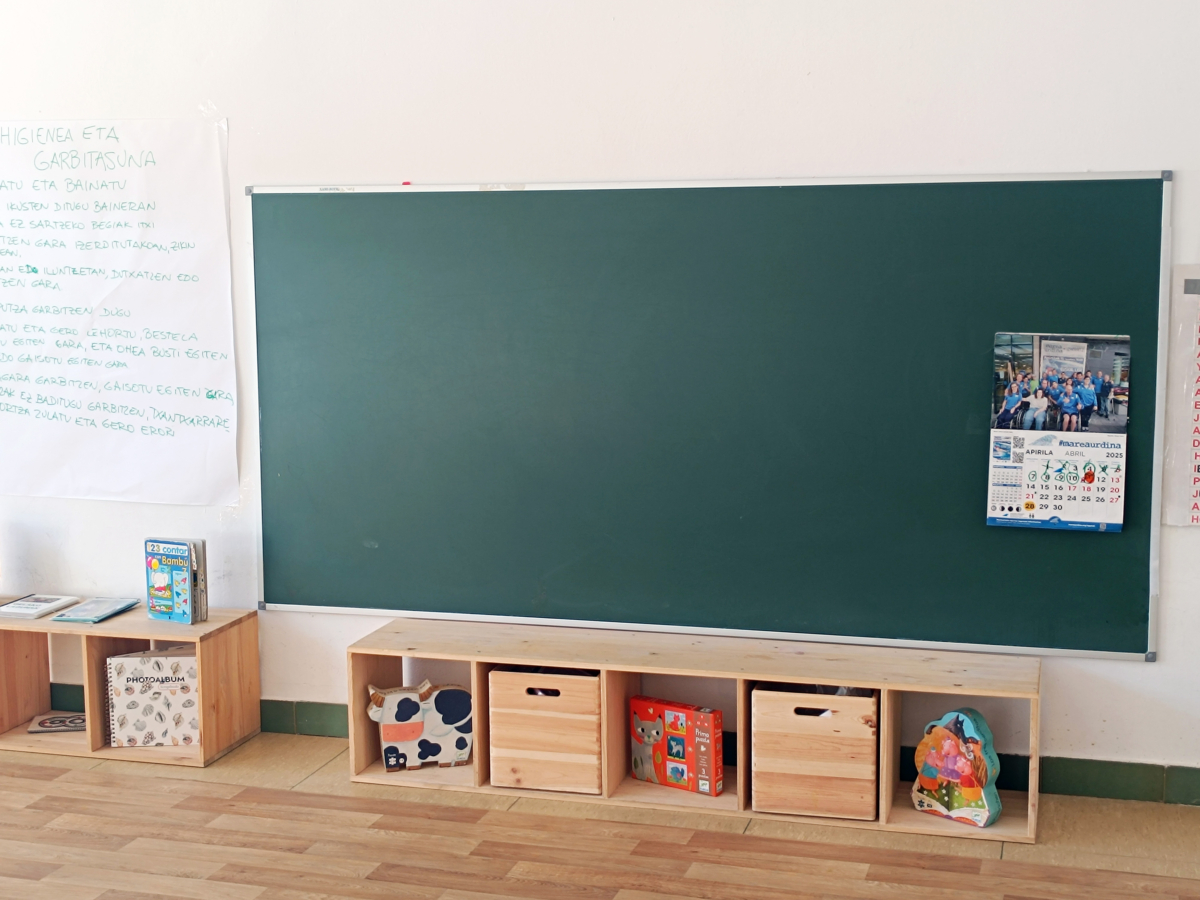 -Auparavant, le mobilier que nous avions était très étanche, avec un usage très limité. En revanche, le mobilier actuel est beaucoup plus polyvalent. Une simple étagère, par exemple, peut être placée dans un coin une semaine, puis déplacée dans un autre espace en fonction des besoins la semaine suivante. Cette flexibilité nous donne une grande liberté. De plus, ce sont des meubles bas, ce qui crée un environnement serein et les rend accessibles aux enfants, puisqu’ils sont à leur hauteur. Nous cherchons à ce que, rien qu’en regardant une salle de classe, on puisse dire : « Ça, c’est Karmelo Etxegarai ». Que quiconque voit l’une de nos salles de classe sache immédiatement qu’elle appartient à notre école à Azpeitia.