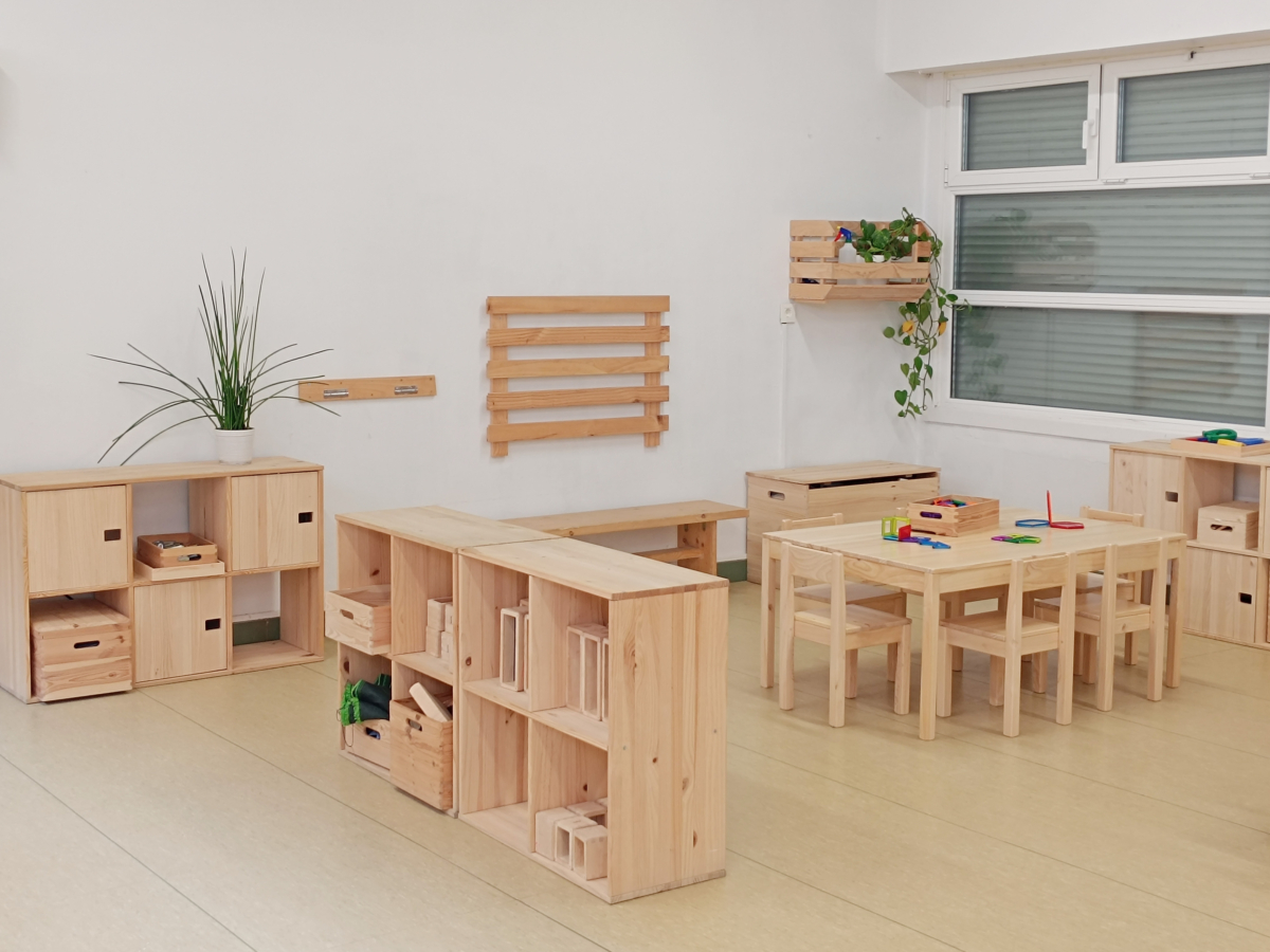 -Le bois est un matériau noble, accessible et polyvalent, qui contribue à créer un environnement accueillant. En outre, la méthodologie pédagogique elle-même nous incite à opter pour le bois naturel.