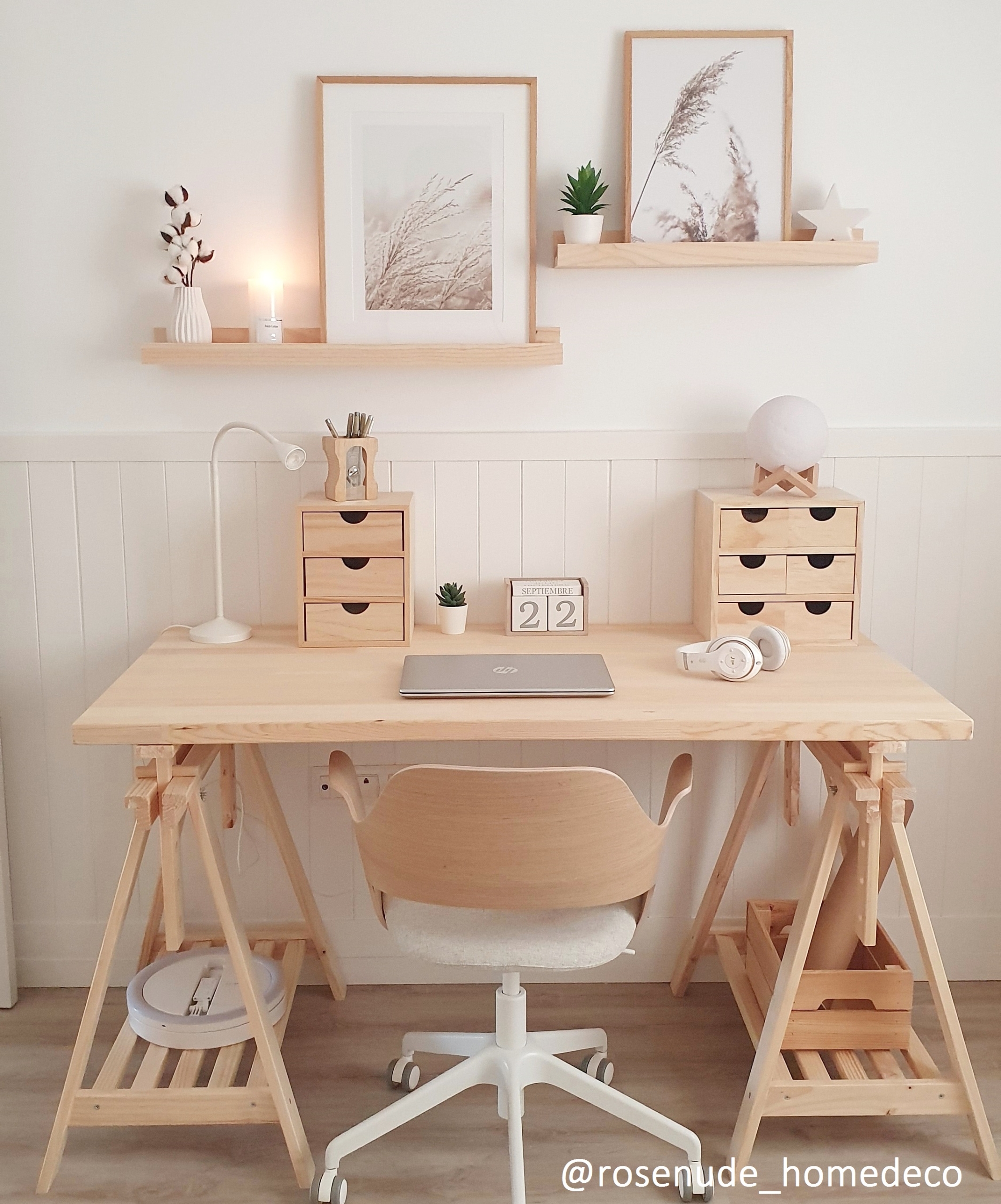 2. Adapté au petit espace, le bureau avec tréteau Glam