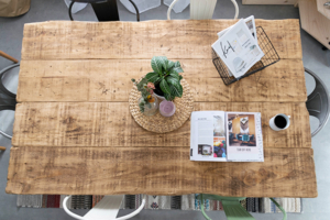 Avec nos planches de pin massif, Sara Moreno (sur Instagram @fruto_samore) a réalisé cette table à l’effet vieilli. Elle a appliqué de la cire de noyer.