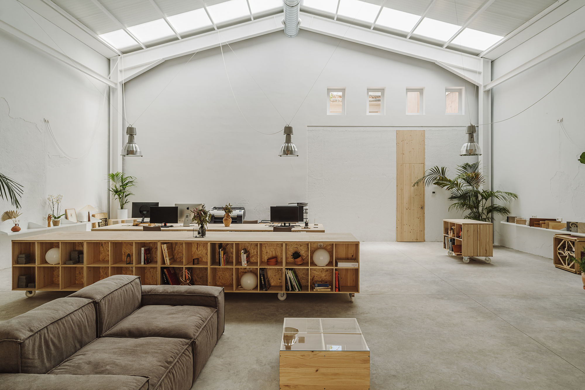 Enfin, et non moins important, un puits de lumière ouvre toute la largeur de l’entrepôt à l’arrière, permettant aux rayons du soleil de baigner les murs et de l’illuminer. Un espace vide. Une feuille blanche pour démarrer de nouveaux projets et se lancer dans de nouvelles aventures. Un support pour les ateliers, les collaborations, les événements, les galeries ou les fêtes. Un espace plein. Un lieu plein d’illusions, d’idées et de motivation. Des meubles sur roues, des plantes géantes et des échantillons de centaines de matériaux locaux. Un nouveau foyer où travailler, créer, pleurer et rire.