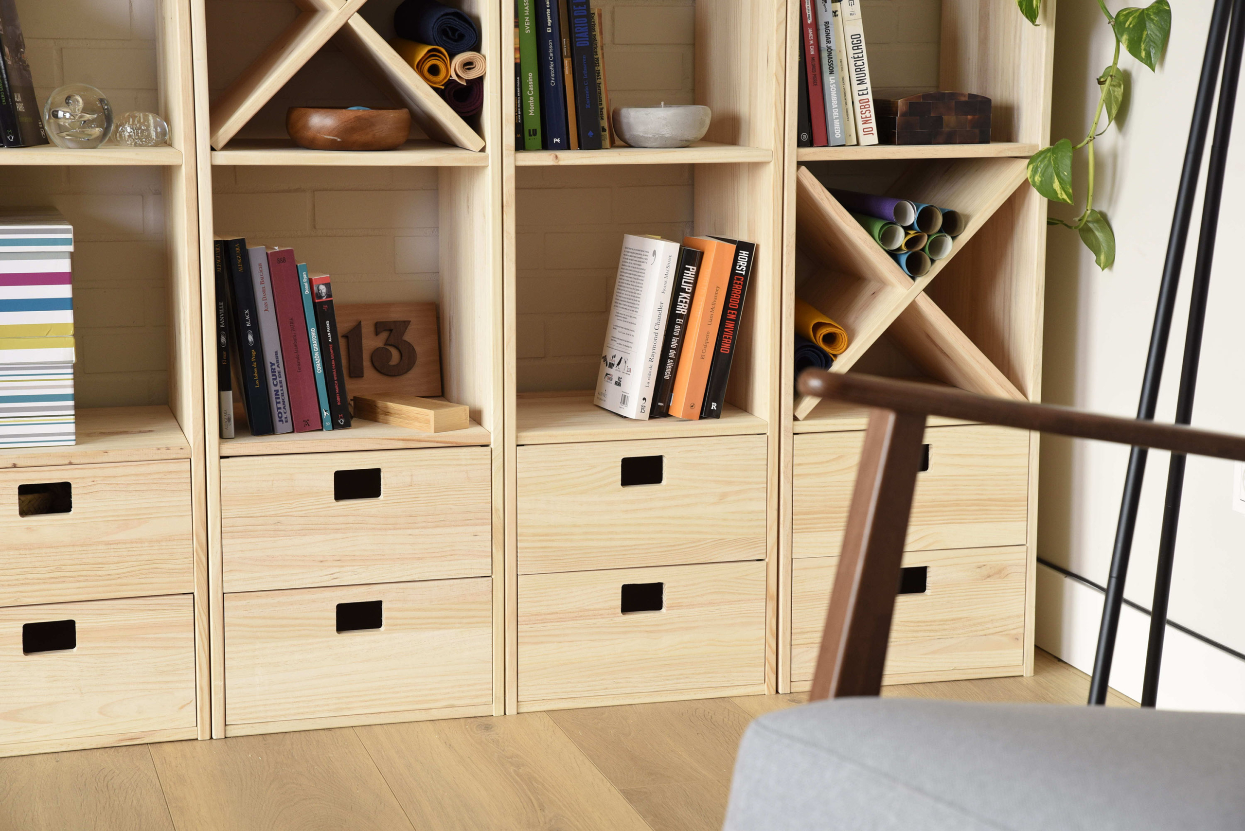 Mais nous avons encore bien de nouveautés à vous présenter. Pour ceux qui nous suivent depuis longtemps, vous connaissez déjà par cœur les étagères modulaires à cubes Dinamic. Mais de plus en plus de personnes rejoignent cette communauté, alors pour les nouveaux arrivants, tout d’abord, bienvenue, et ensuite, pourquoi ne pas faire un petit tour d’horizon de ces meubles de rangement ? Dinamic est un système modulaire d’étagères en bois de pin massif. Étagères modulaires en forme de cubes qui peuvent être utilisées individuellement ou en différentes combinaisons dans n’importe quelle pièce de votre maison, de votre bureau ou de votre magasin. En outre, vous pouvez ajouter divers accessoires à chaque cube pour gagner en fonctionnalité et en esthétique. Aujourd’hui, nous vous présentons le nouvel accessoire pour les étagères modulaires à cubes Dinamic.