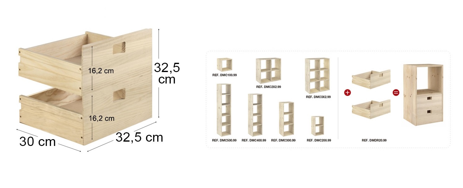 Il s’agit du kit de deux tiroirs en bois qui s’insère dans les cubes Dinamic.