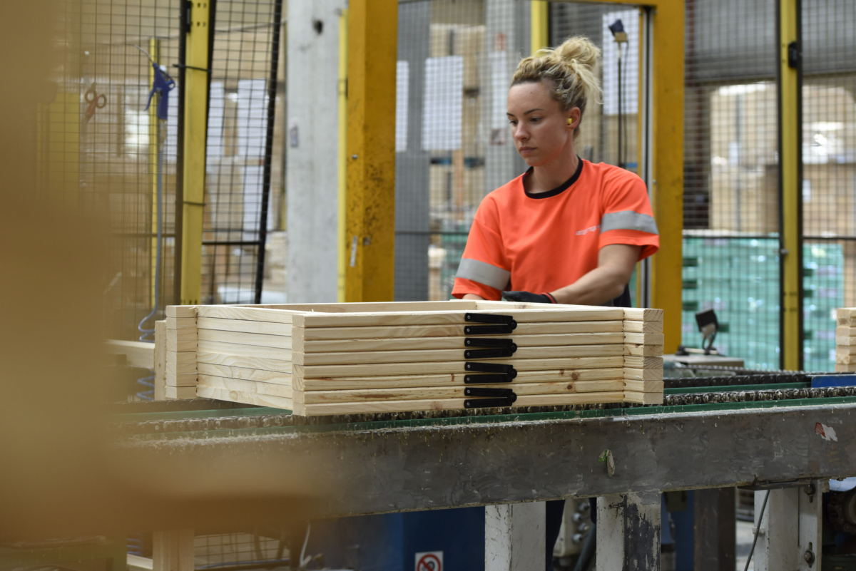 Après séchage, les planches sont acheminées vers nos usines de fabrication, tant pour les tréteaux que pour les meubles. Là, le bois est transformé : il est coupé, assemblé et chaque produit est façonné avec le soin et la précision qui nous caractérisent.