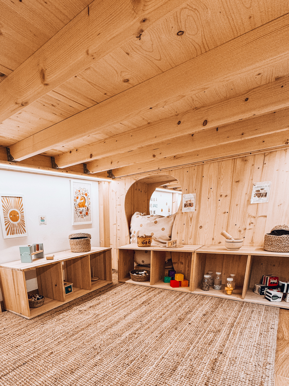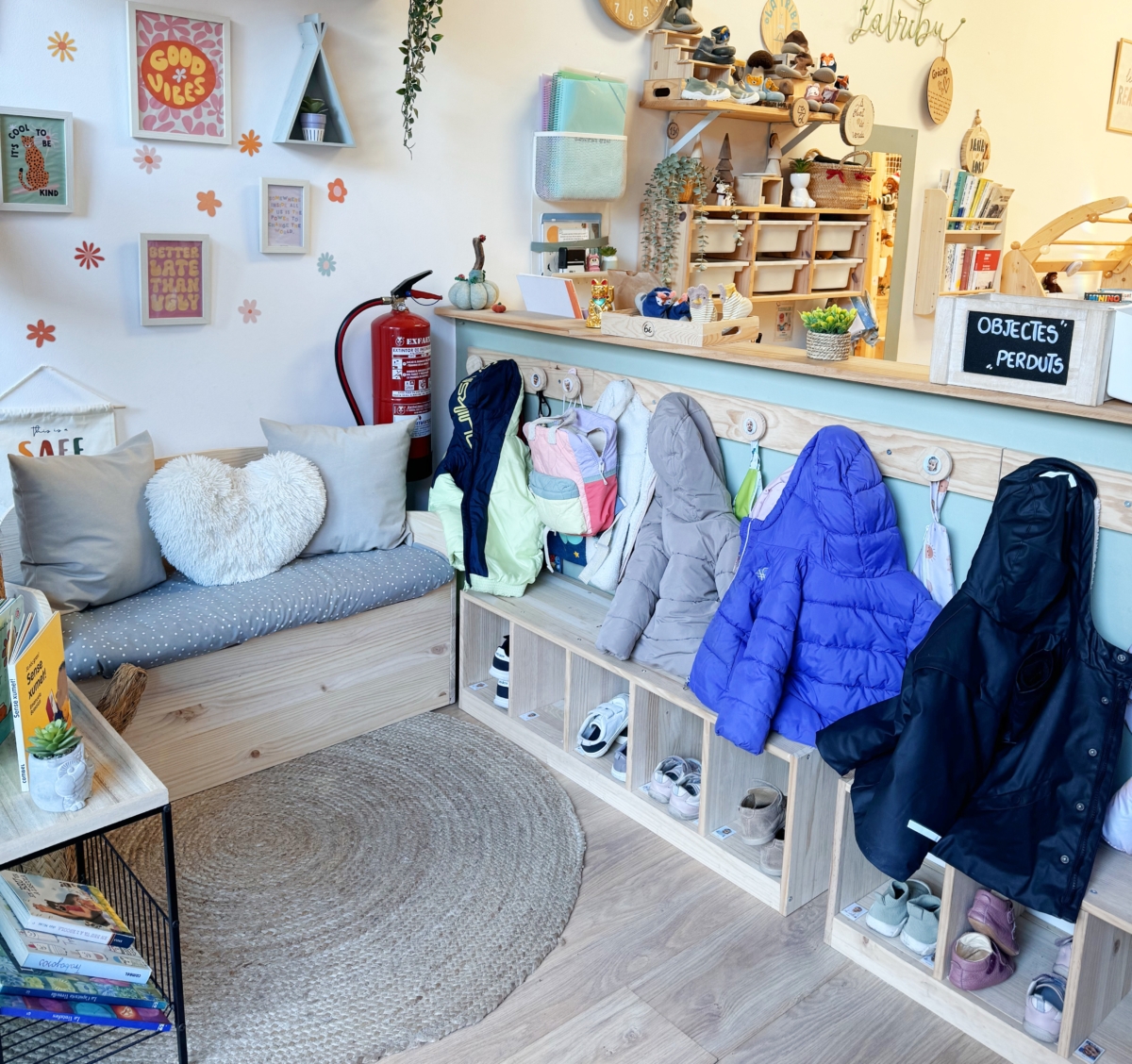 La méthode Montessori souligne l’importance de fournir aux enfants un environnement structuré mais flexible dans lequel ils peuvent explorer et apprendre de manière indépendante. Des bancs et des porte-manteaux à leur hauteur les aident à développer des habitudes d’autonomie et d’ordre, en réduisant les interruptions et en encourageant la responsabilité personnelle.