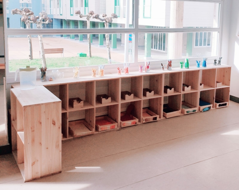Les étagères modulaires à cubes DINAMIC sont idéales pour accéder à tous les matériaux. Vous pouvez combiner différents modules et ajouter des accessoires. École Karmelo Etxegaray, à Azpeitia (Guipúzcoa-Espagne).