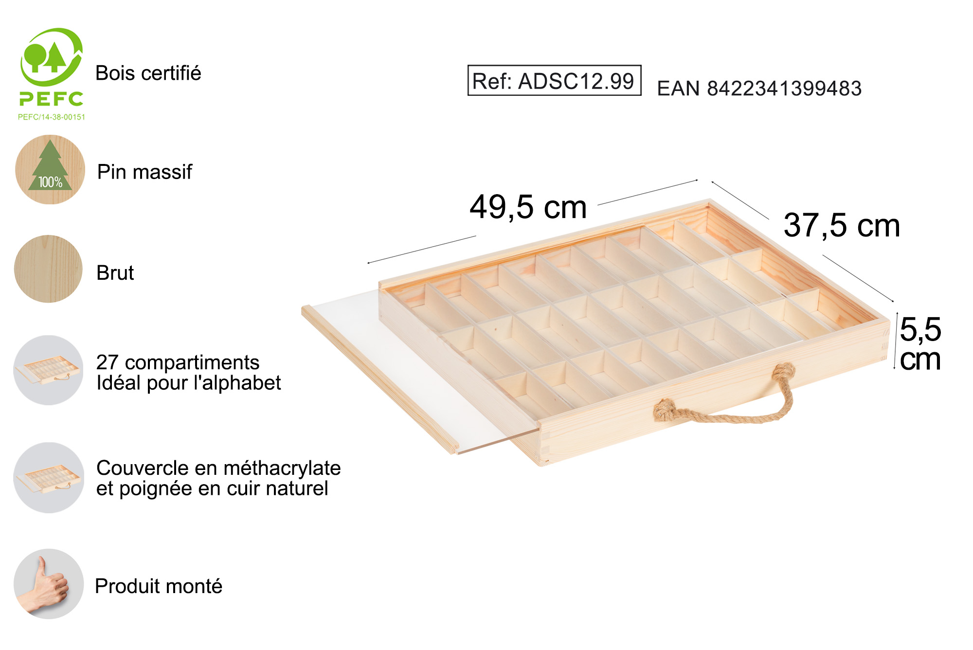 • Boîte en bois idéale pour les lettres de l'alphabet