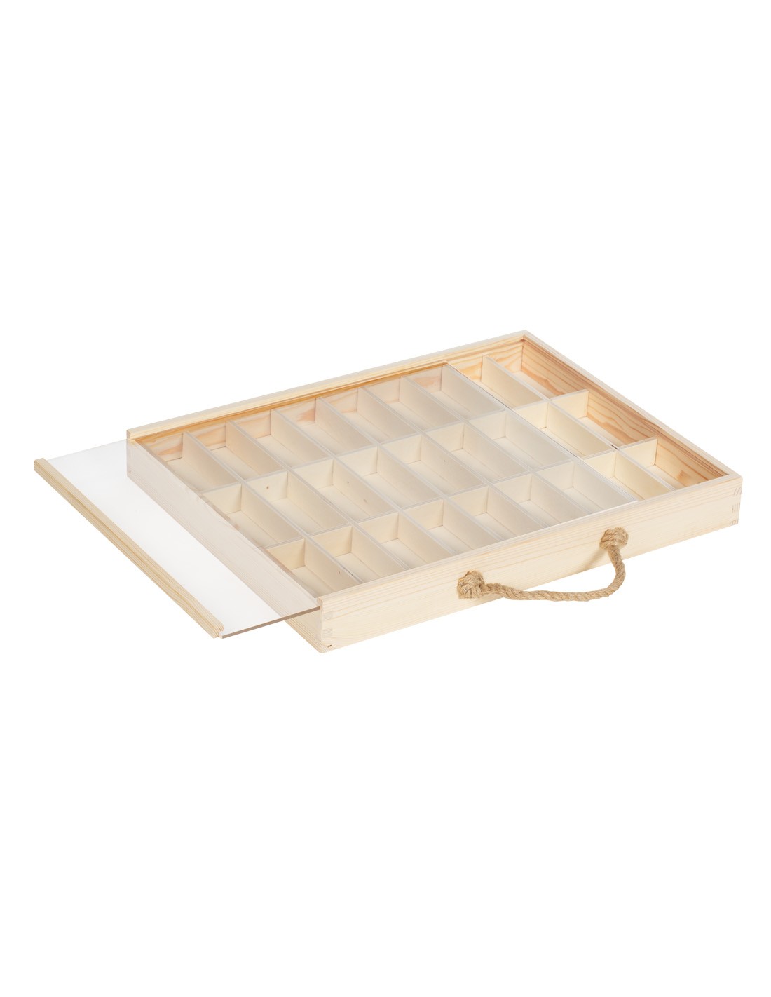 Notre boîte en bois avec 27 sections de la même taille est spécialement conçue pour ranger et présenter toutes les lettres de l'alphabet dans l'ordre, aidant ainsi les enfants à se familiariser intuitivement avec l'alphabet. Avec cette boîte, les petits pourront comprendre le concept d'ordre alphabétique de façon visuelle et pratique, et apprendre la lecture, l'écriture ou les mots de façon plus ludique.
