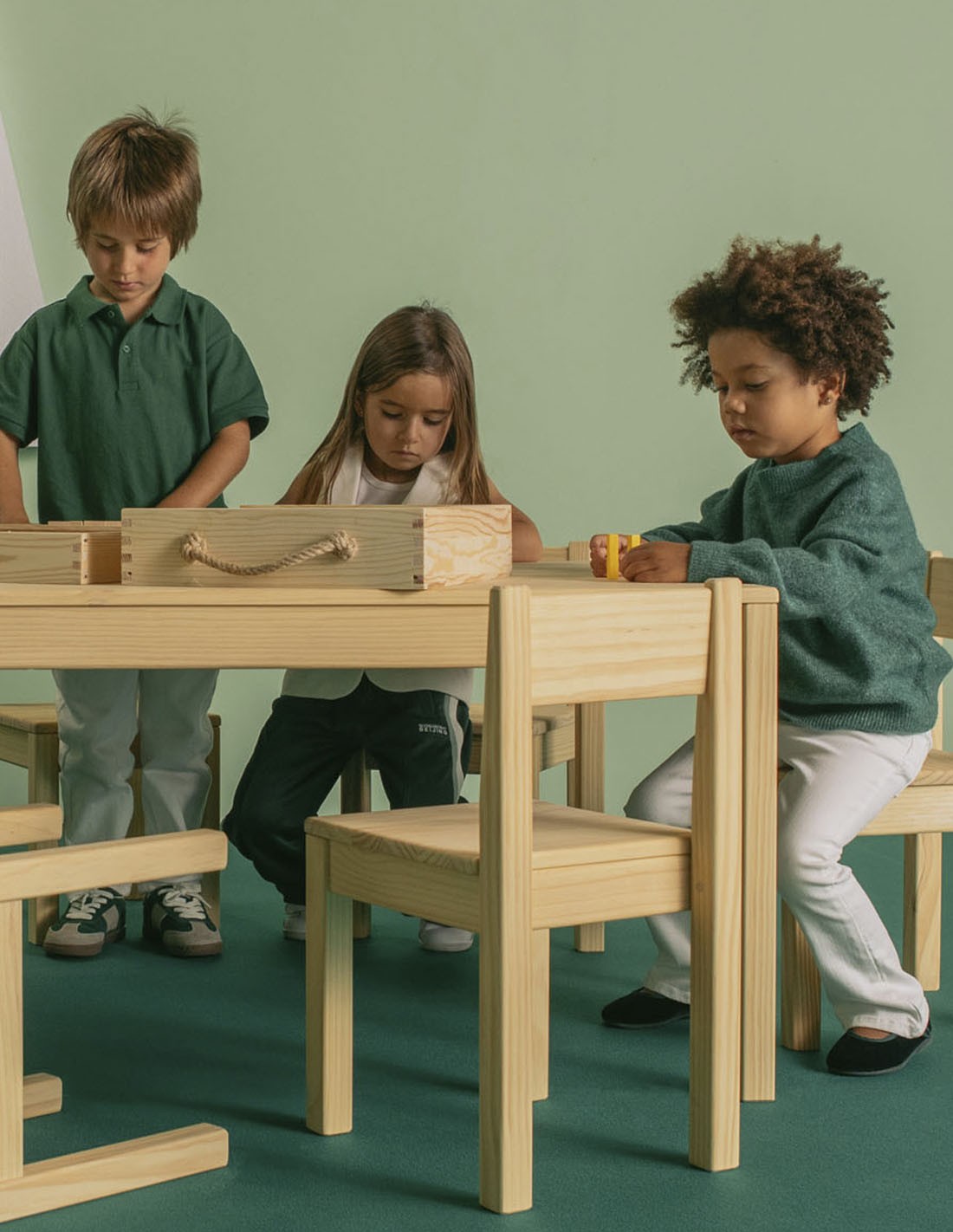 S'entourer de bois naturel est bénéfique pour les enfants, car cela leur procure un sentiment de chaleur et de bien-être, améliore l'environnement d'apprentissage et les aide à se sentir plus proches de la nature. En outre, le bois contribue à créer un environnement calme, qui facilite l'apprentissage et la créativité.
