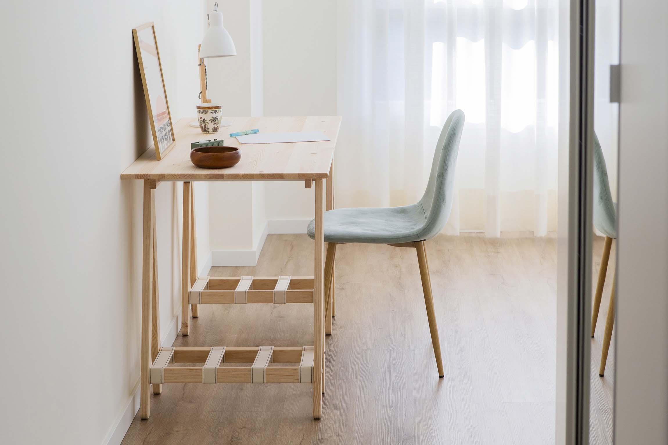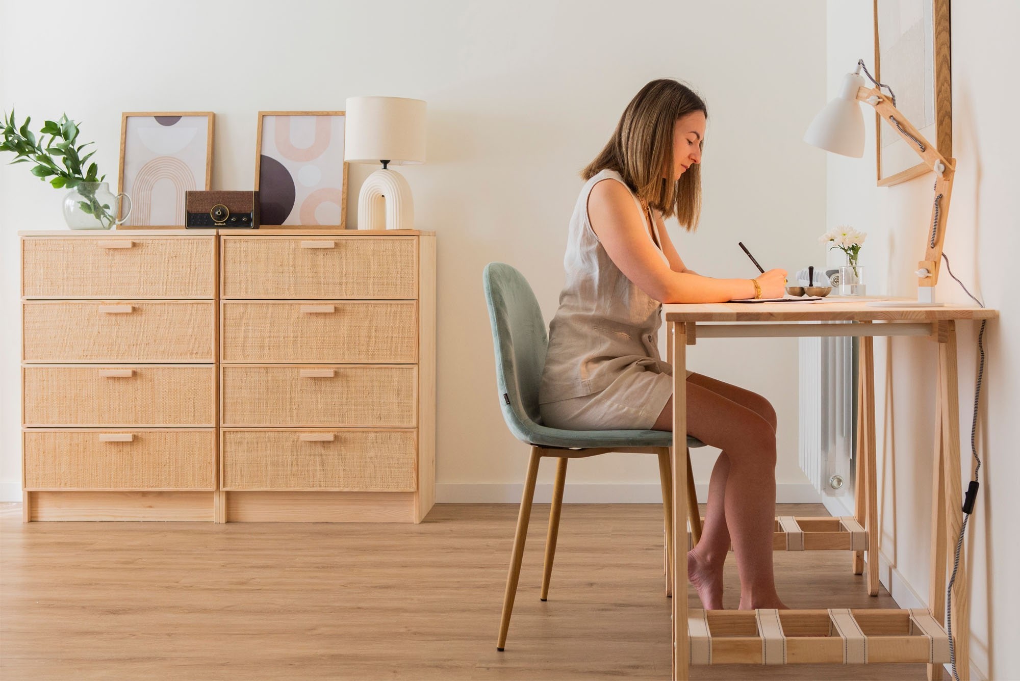 Un bureau en bois naturel, fabriqué avec des matériaux durables et conçu pour durer. Les pieds ANCORA peuvent supporter jusqu’à 400 kg, une résistance testée dans un centre technologique. Il est livré en kit, avec un montage facile et sans complication.