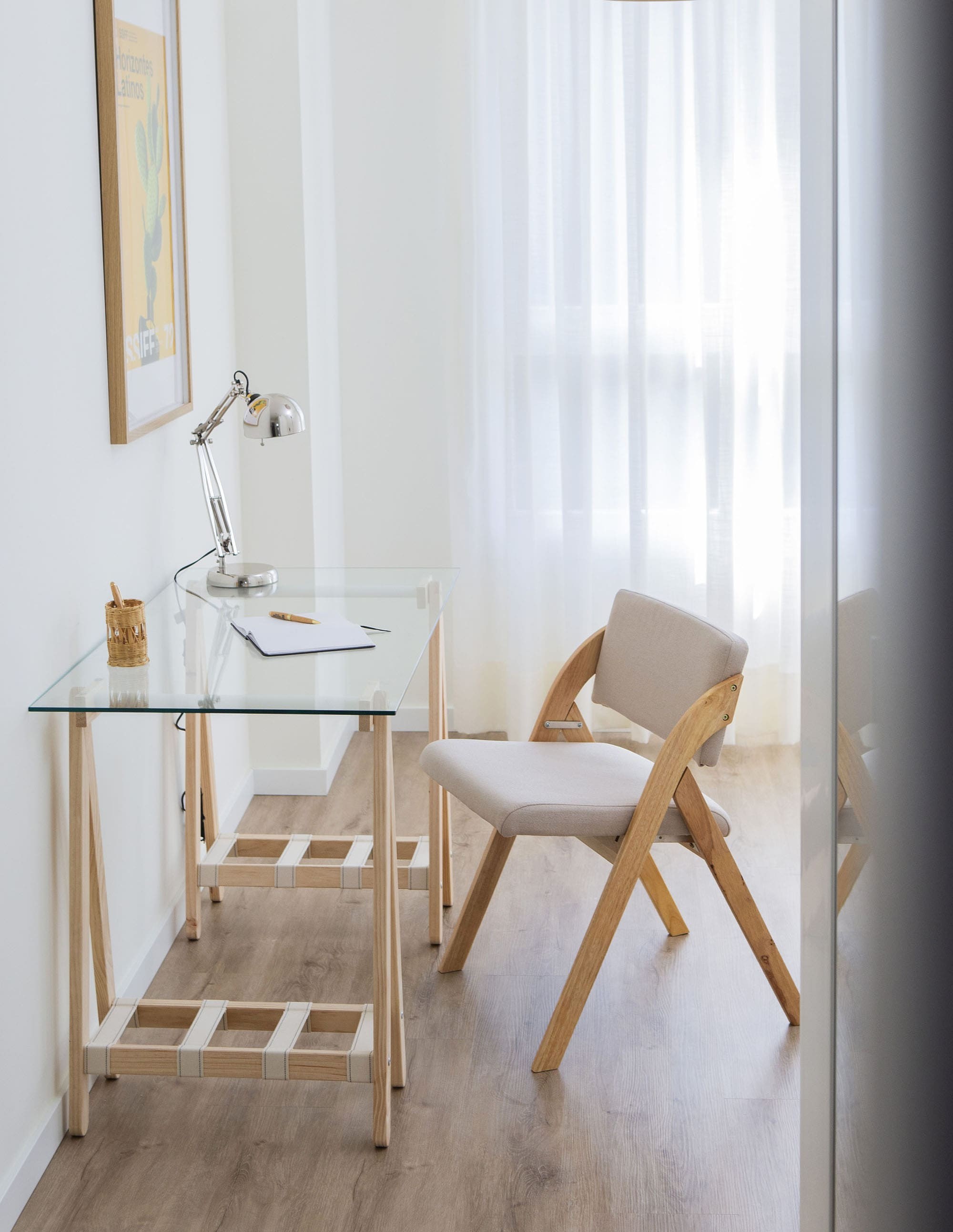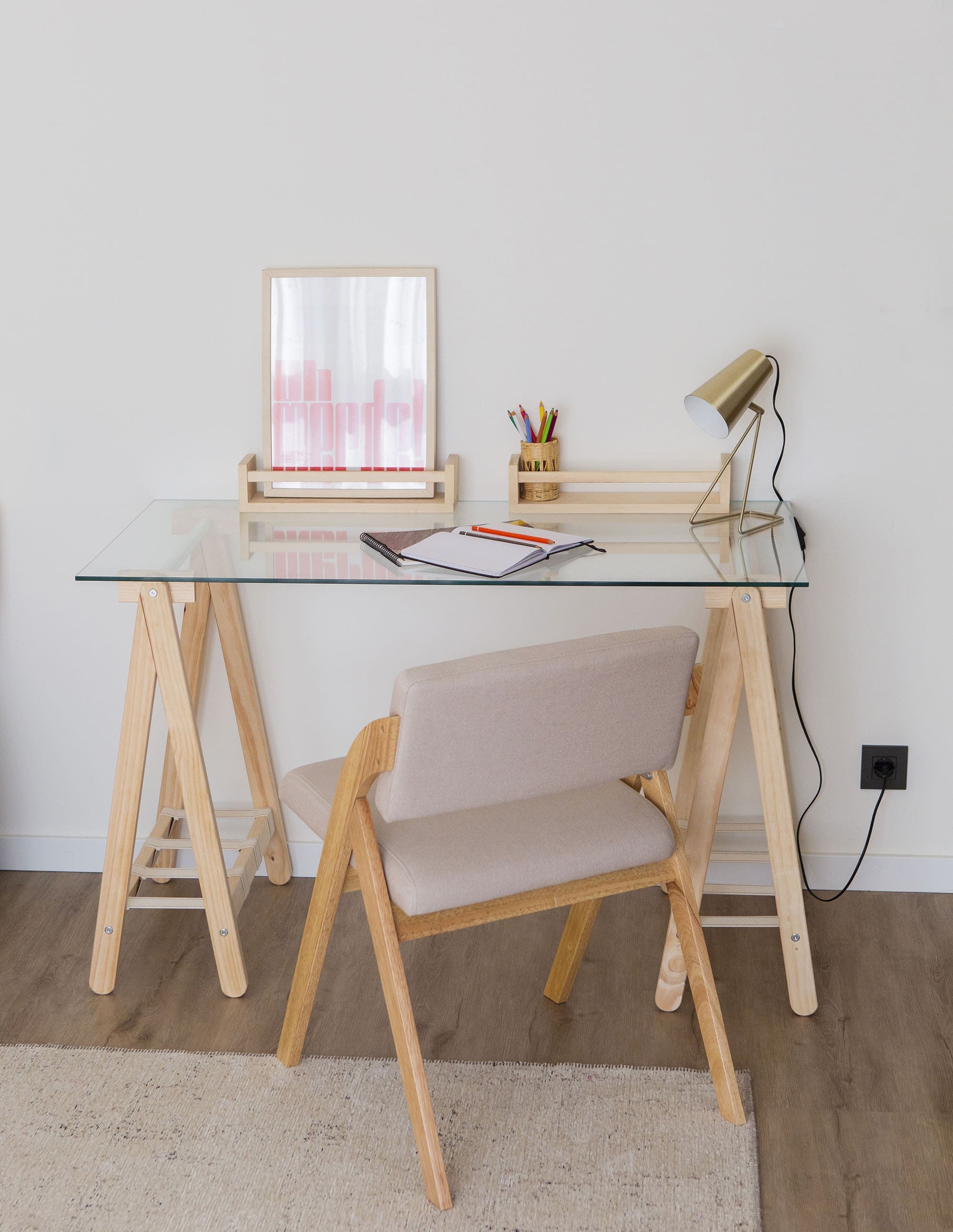 Profitez d’un espace de travail plus lumineux et fonctionnel avec ce bureau en verre ANCORA de 120×60 cm. Son plateau en verre trempé apporte de la légèreté et une sensation d’espace. Les pieds, en pin 100 % massif et local, comprennent un tube métallique blanc et des sangles 100 % coton cousues à la main. Un support qui garantit une résistance maximale : les pieds ANCORA peuvent supporter jusqu’à 400 kg et ont été testés dans un centre technologique.