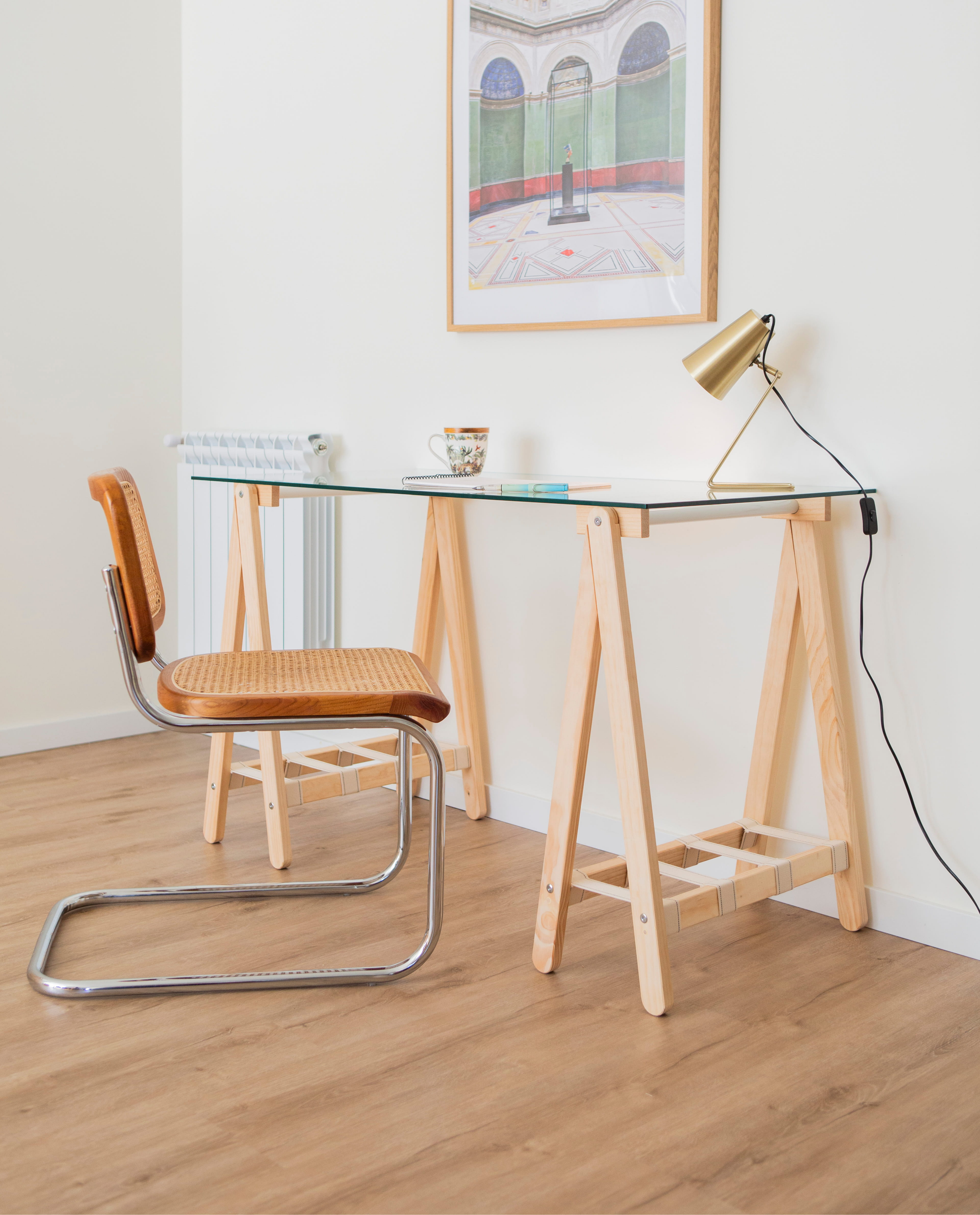 Fabriqué à partir d’une combinaison judicieuse de bois natural qui respire la nature, de metal robuste pour l’équilibre, et de coton tressé qui évoque le fait main, sa présence transforme tout encironnement en un lieu où la créativité peut s’enraciner.