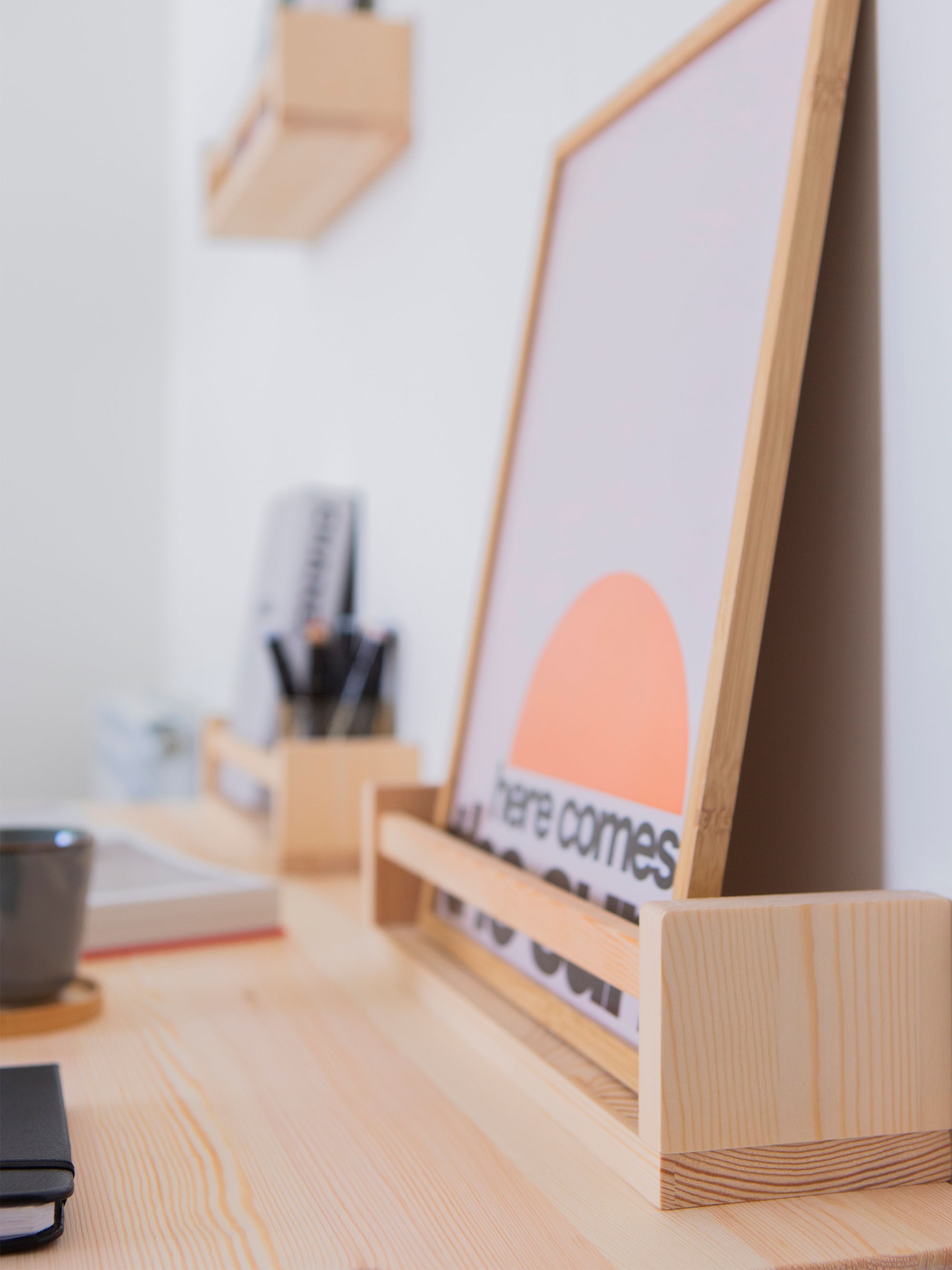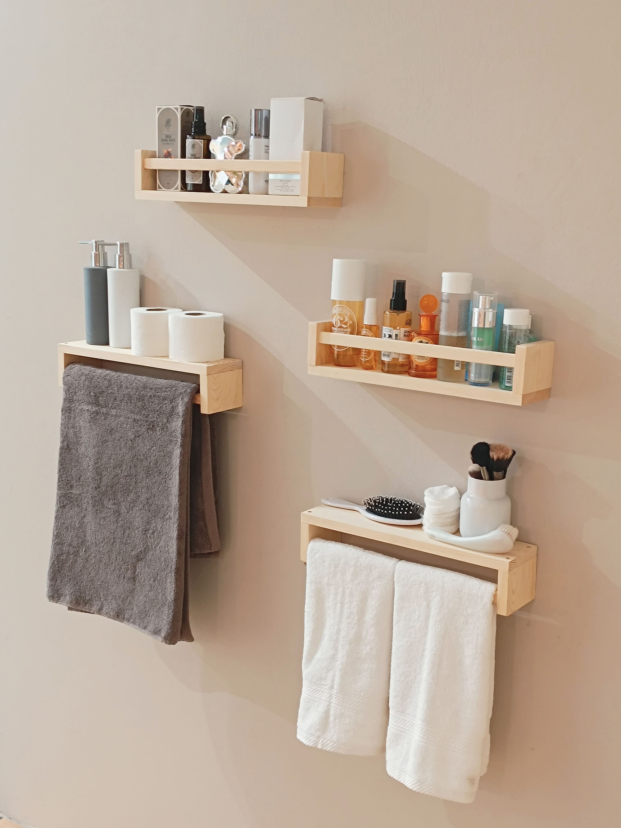 Mais elle ne sert pas qu’à la cuisine. Cette étagère en bois est un véritable meuble polyvalent : dans une chambre d’enfant, elle peut devenir une étagère à livres ; dans la salle de bain, elle permet d’organiser flacons et parfums ; et dans le bureau, elle accueille ton matériel de travail ou un cadre avec une phrase inspirante. Une petite étagère qui multiplie les possibilités et s’adapte à chaque espace de la maison !