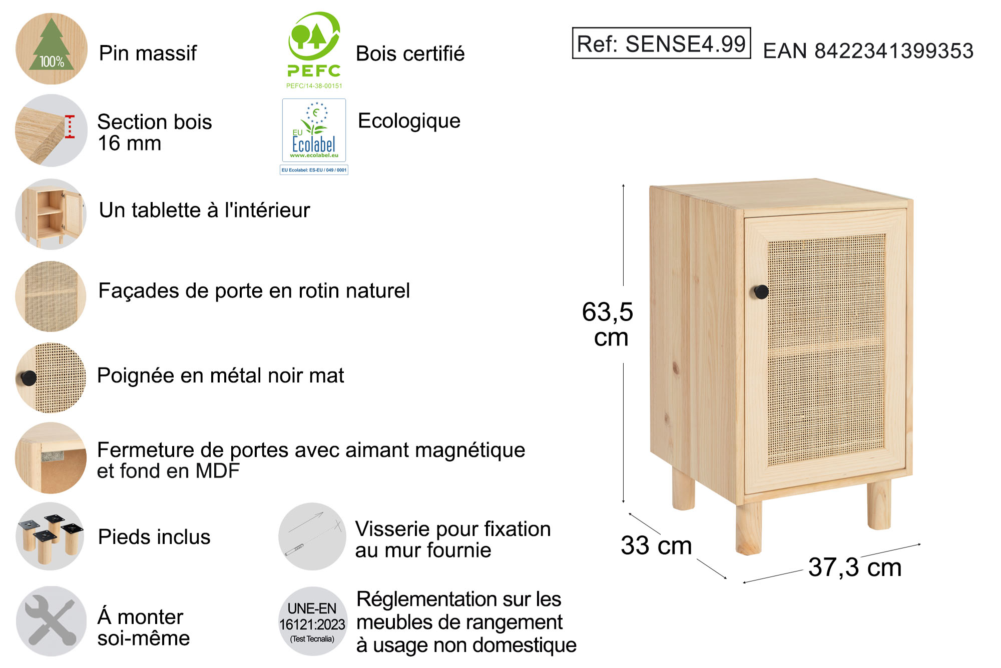 Ce meuble est conforme à la norme UNE-EN 16121:2023, conçue pour garantir la qualité et la résistance des meubles de rangement à usage collectif. Idéal pour un usage professionnel en toute confiance. Vous pouvez le combiner aux autres meubles en rotin de la collection SENSE pour créer un ensemble harmonieux. Chaque meuble est soigneusement conçu pour mettre en valeur la texture artisanale du rotin ainsi que le grain et les nœuds naturels du bois de pin, offrant une beauté authentique et un équilibre visuel unique. Intégrez l’armoire en rotin à deux portes chez vous pour créer un espace à la fois naturel et durable. Votre maison est votre refuge : elle mérite un meuble d’exception.