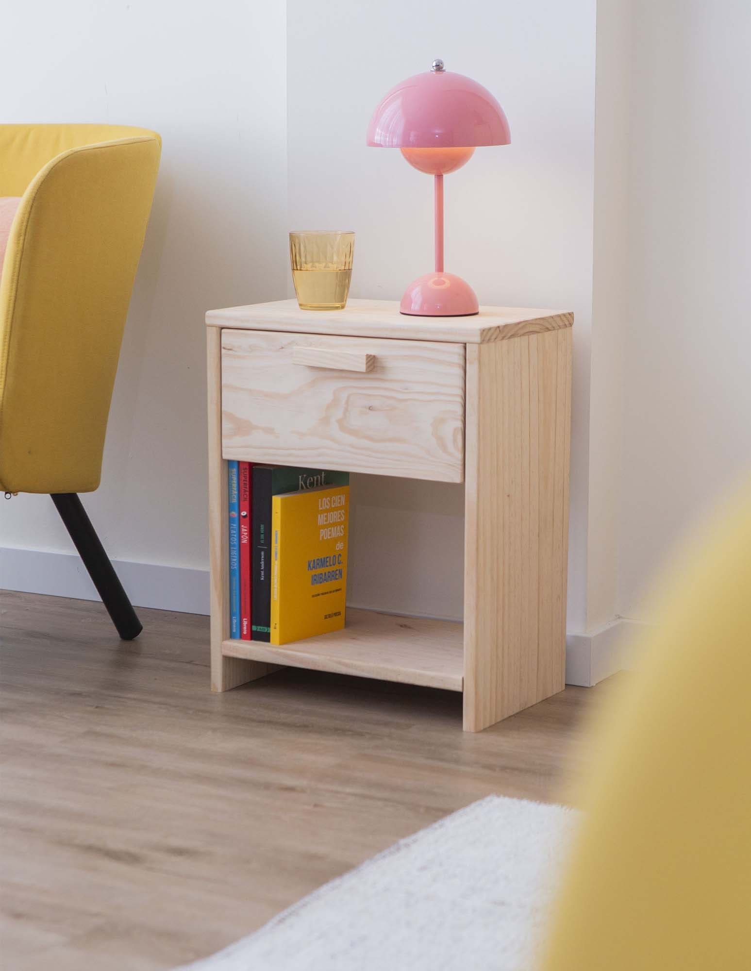 • Table de chevet en pin VITA avec un tiroir et une étagère inférieure